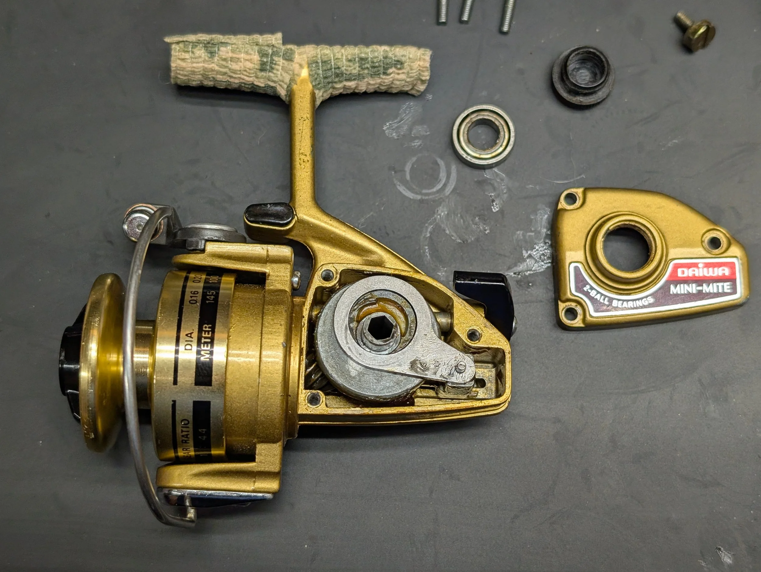 Now here is the fun part; the reel. This is where we are looking for quality, cheap quality. Does such a thing exist? Absolutely! Vintage micro-lite spinners. Those that are approaching 50 years old make the best candidates. Models like the Daiwa Mini Mite, Daiwa 500C and 700C, and the Shakespeare 2499 are some of my favorites. These reels are very simple inside and as tough as they come. They’ve already had a long service life and even the most banged up looking examples will still clean up and fish wonderfully. While you can browse eBay, you will pay accordingly. On eBay, these reels can potentially fetch $100+ due to how well reputed they are. If you do a little legwork, you will be looking in the $5-$20 range. They can be found at flea markets, garage sales, estate sales, antique shops, Facebook Marketplace, pretty much anywhere somebody is looking to offload old “junk”. Besides, this is how the eBay sellers acquire them and turn a profit. If you aren’t playing their game, you’re coming out ahead. Servicing them isn’t overly difficult either. More of that below.